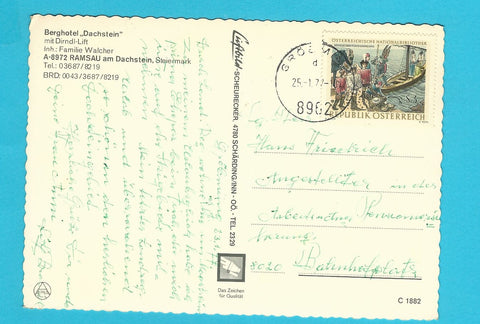 AK Ramsau am Dachstein. Berghotel Dachstein. Inh.: Familie Walcher. Gelaufen. Großformat. Verlag: Luftbild Scheurecker. Nummeriert: C 1882. Zustand: gut, rechtes oberes Eck geknickt.