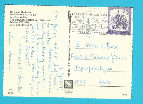 AK Ramsau am Dachstein. Berghotel Dachstein. Inh.: Hans Walcher. Gelaufen. Großformat. Verlag: Luftbild Scheurecker. Nummeriert: C 2079. Zustand: gut.