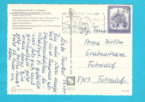 AK Ramsau am Dachstein. Frühstückspension W. u. H. Walcher. Gelaufen. Großformat. Verlag: Luftbild Scheurecker. Nummeriert: C 1112. Zustand: gut.