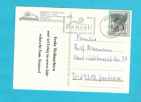 AK Ramsau am Dachstein. Gästehaus Hermann. Vorberg 163. Familie H. u. L. Franzel. Gelaufen. Großformat. Verlag: Lang. Zustand: gut.
