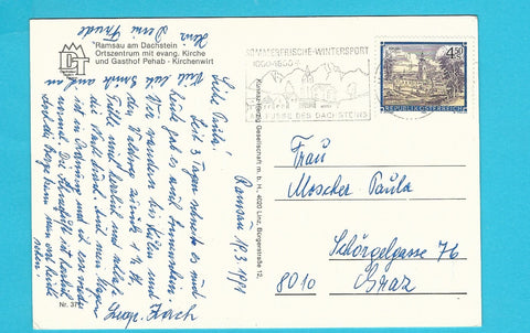 AK Ramsau am Dachstein. Gasthof Pehab - Kirchenwirt. Gelaufen. Großformat. Verlag: Kunasz. Nummeriert: 371. Zustand: gut.