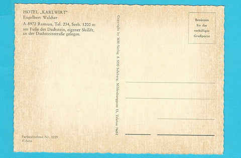 AK Ramsau am Dachstein. Hotel Karlwirt. Engelbert Walcher. Ungelaufen. Großformat. Verlag: MM. Nummeriert: 1229. Zustand: gut.