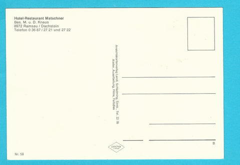 AK Ramsau am Dachstein. Hotel Restaurant Matschner. Bes. M. u. D. Knaus. Ungelaufen. Großformat. Verlag: Landl. Nummeriert: 59. Zustand: gut.