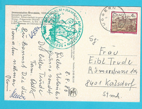 AK Ramsau am Dachstein. Jausenstation Brandalm. Gelaufen. Großformat. Verlag: Meiberger. Zustand: gut.