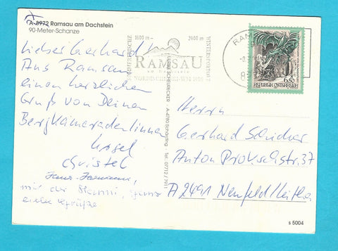 AK Ramsau am Dachstein. Nordische Ski-WM 1999. Gelaufen. Großformat. Verlag: Luftbild Scheurecker. Nummeriert: s 5004. Zustand: gut, Ecken leicht angestoßen.