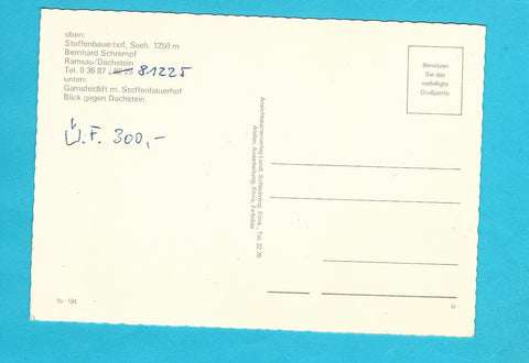 AK Ramsau am Dachstein. Pension Stoffenbauer. Bernhard Schrempf. Ungelaufen. Großformat. Verlag: Landl. Nummeriert: 194. Zustand: leicht bestoßen.