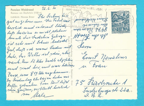 AK Ramsau am Dachstein. Pension Waldrand. Gelaufen. Großformat. Verlag: Broer. Nummeriert: 1008. Zustand: gut, leicht fleckig.