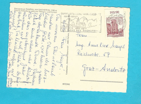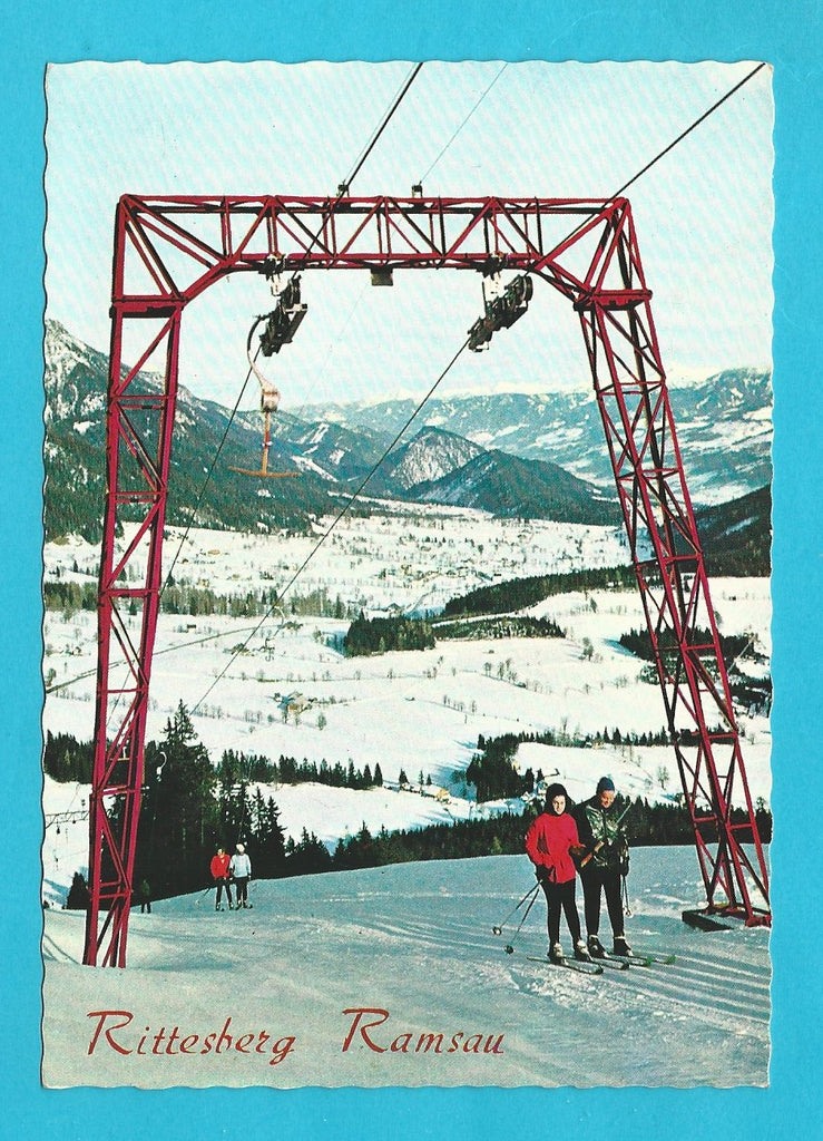AK Ramsau am Dachstein. Schilift Rittesberg. Gelaufen. Großformat. Verlag: Schönes Österreich. Nummeriert: 8972/W8. Zustand: Knick rechts der Bildmitte, rechtes oberes Eck geknickt.