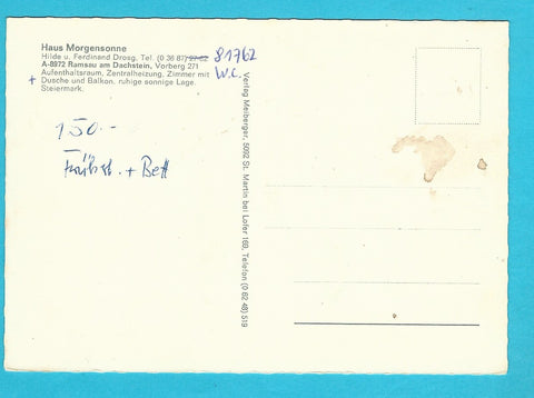 AK Ramsau am Dachstein. Vorberg 271. Haus Morgensonne. Hilde u. Ferdinand Drosg. Ungelaufen. Großformat. Verlag: Meiberger. Zustand: knittrig.