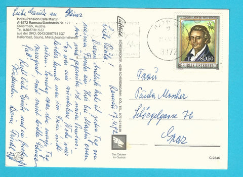 AK Ramsau/Dachstein. Hotel-Pension Cafe Martin. Gelaufen. Großformat. Verlag: Luftbild Scheurecker. Nummeriert: C 2346. Zustand: gut.