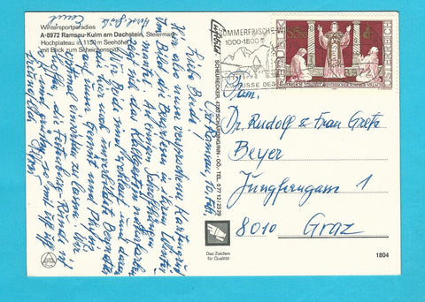 AK Ramsau-Kulm. Gelaufen. Großformat. Verlag: Luftbild Scheurecker. Nummeriert: 1804. Zustand: gut, linkes unteres Eck geknickt.