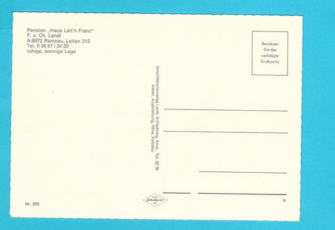 AK Ramsau, Leiten 312. Pension Haus Leit'n Franz. F. u. Ch. Landl. Ungelaufen. Großformat. Verlag: Landl. Nummeriert: 255. Zustand: gut.