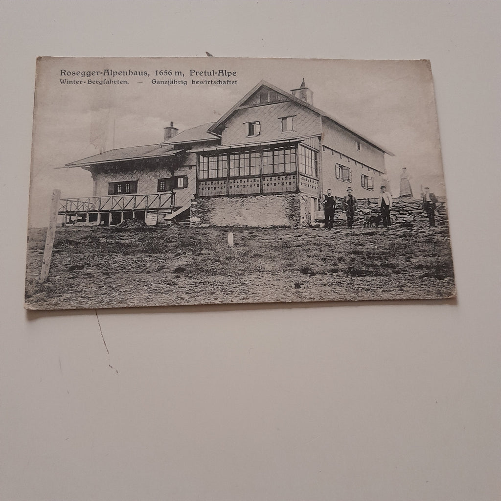 AK Rosegger-Alpenhaus. Pretul-Alpe. Winter-Bergfahrten. (1924) Ungelaufen. Kleinformat. Verlag: Kuderna. Nummeriert: 1096. Zustand: gut, leicht fleckig.