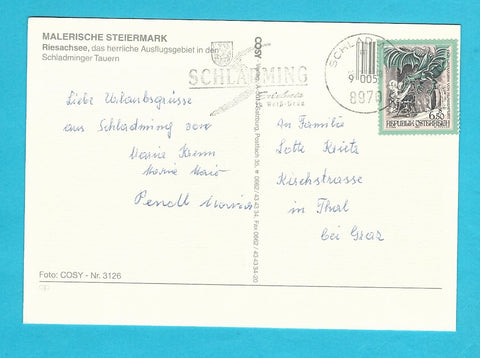 AK Riesachsee. Gfölleralm. Schladminger Tauern. Gelaufen. Großformat. Verlag: Cosy. Nummeriert: 3126. Zustand: gut, obere Ecken leicht angeknickt.