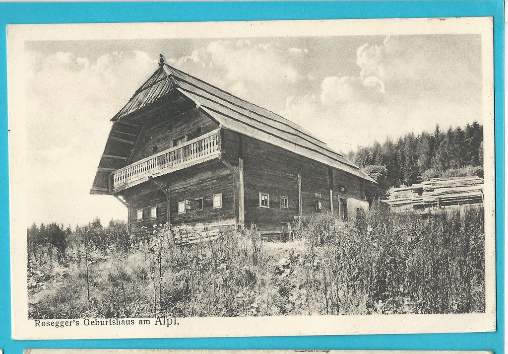 AK Rosegger's Geburtshaus am Alpl. (1925) Ungelaufen. Kleinformat. Verlag: Ledermann. Nummeriert: 17038. Zustand: gut, rechtes unteres Eck geknickt.