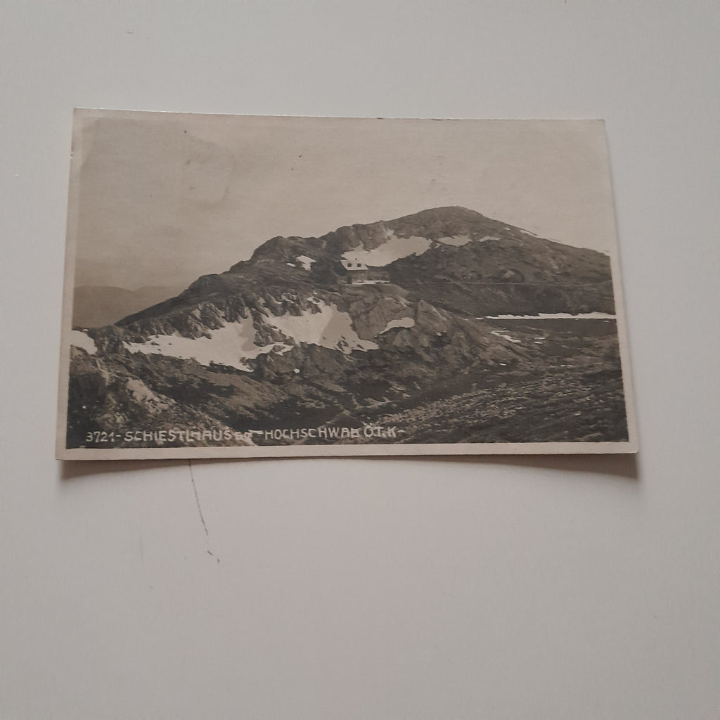 AK Schiestlhaus. Hochschwab. Gelaufen. Kleinformat. Verlag: Helff. Nummeriert: 3721. Zustand: gut, linkes oberes Eck geknickt.