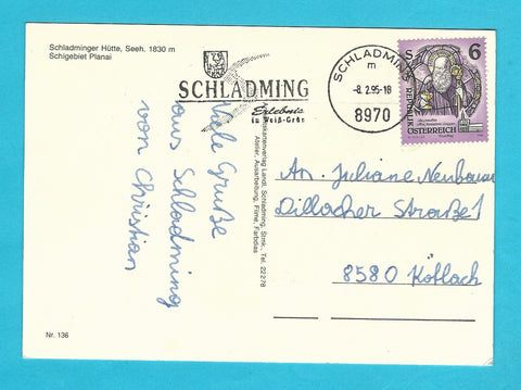 AK Schigebiet Planai. Schladminger Hütte. Gelaufen. Großformat. Verlag: Landl. Nummeriert: 136. Zustand: Knicke über dem linken unteren Eck.