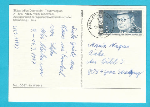 AK Schiparadies Haus i. Ennstal. Hauser Kaibling. Gelaufen. Großformat. Verlag: Cosy. Nummeriert: W 9543. Zustand: gut.
