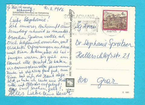 AK Schiparadies Rohrmoos bei Schladming. Gelaufen. Großformat. Verlag: Luftbild Scheurecker. Nummeriert: C 1501. Zustand: gut, Kugelschreibermarkierung links der Bildmitte.