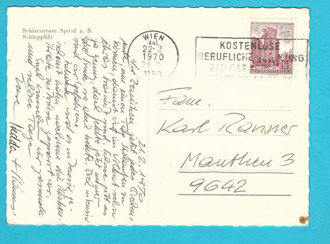 AK Schizentrum Spital am Semmering. Schlepplift. Gelaufen. Großformat. Zustand: linkes unteres Eck geknickt, Knick oben in der Mitte.