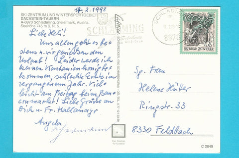 AK Schladming. Gelaufen. Großformat. Verlag: Luftbild Scheurecker. Nummeriert: C 2849. Zustand: gut, wenig bestoßen.