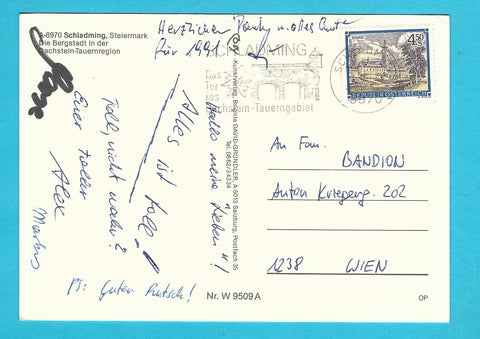 AK Schladming. Gelaufen. Großformat. Verlag: Cosy. Nummeriert: W 9509 A. Zustand: gut, linkes oberes Eck angeknickt.