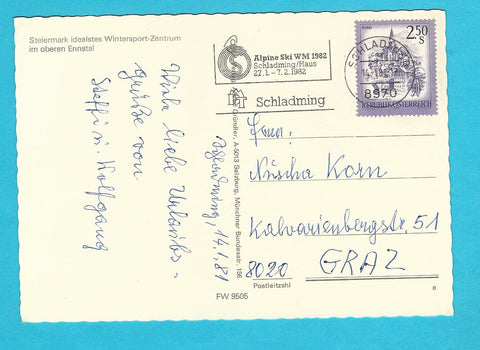 AK Schladming. Gelaufen. Großformat. Verlag: Cosy. Nummeriert: FW 9505. Zustand: Knicke über dem rechten oberen Eck.