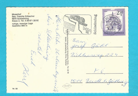 AK Schladming. Moserhof. Bes. Familie Erlbacher. Gelaufen. Großformat. Verlag: Landl. Nummeriert: 93. Zustand: Ecken geknickt.