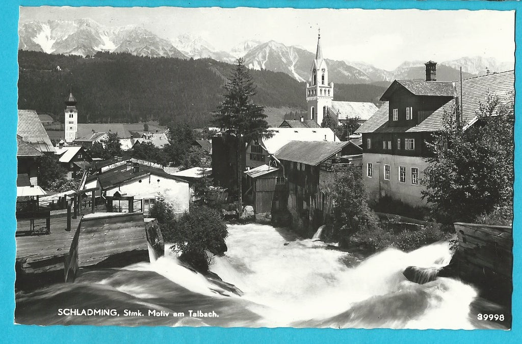 AK Schladming. Motiv am Talbach. (1964) Gelaufen. Kleinformat. Verlag: Ledermann. Nummeriert: 39998. Zustand: gut.