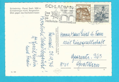 AK Schladming - Planai. Schladminger Hütte, Bergstation. Gelaufen. Großformat. Verlag: Landl. Nummeriert: 166. Zustand: gut, rechtes unteres Eck angeknickt.