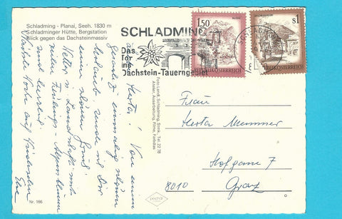 AK Schladming - Planai. Schladminger Hütte, Bergstation. Gelaufen. Großformat. Verlag: Landl. Nummeriert: 166. Zustand: gut.