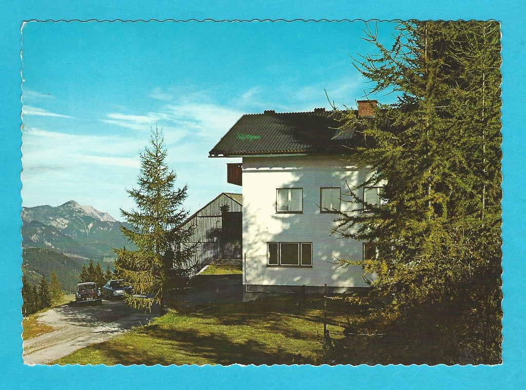 AK Schladming. Rohrmoos 28. Pension Alpenhof. Inhaber: Anton Stocker. Gelaufen. Großformat. Verlag: Luftbild Scheurecker. Nummeriert: C 1469. Zustand: stärker bestoßen.