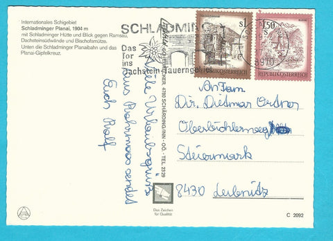 AK Schladming - Schiparadies Planai. Gelaufen. Großformat. Verlag: Luftbild Scheurecker. Nummeriert: C 2092. Zustand: gut.