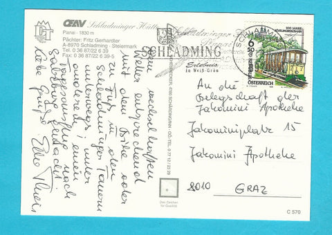 AK Schladminger Hütte. Planai. Gelaufen. Großformat. Verlag: Luftbild Scheurecker. Nummeriert: C 570. Zustand: gut.