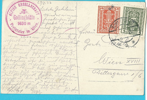 AK Schladminger Tauern. Golling-Hütte. Gelaufen. Kleinformat. Verlag: Brüder Lenz.Nummeriert: 849. Zustand: gut, linkes oberes Eck angeknickt, Bleistiftpfeil rechts oben.