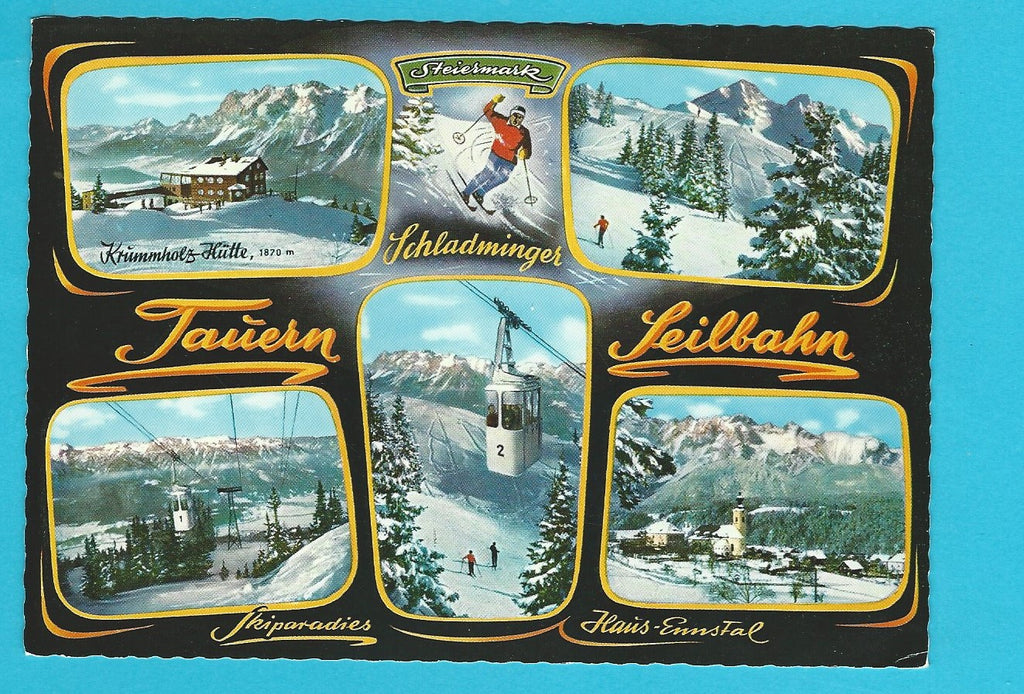 AK Schladminger Tauern Seilbahn. Skiparadies Haus-Ennstal. Gelaufen. Großformat. Verlag: Cosy. Nummeriert: FW 9562. Zustand: gut, rechtes unteres Eck angeknickt.