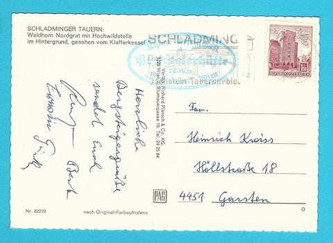 AK Schladminger Tauern. Waldhorn Nordgrat mit Hochwildstelle im Hintergrund, gesehen vom Klafferkessel. Gelaufen. Großformat. Verlag: Pietsch. Nummeriert: 82270. Zustand: gut.