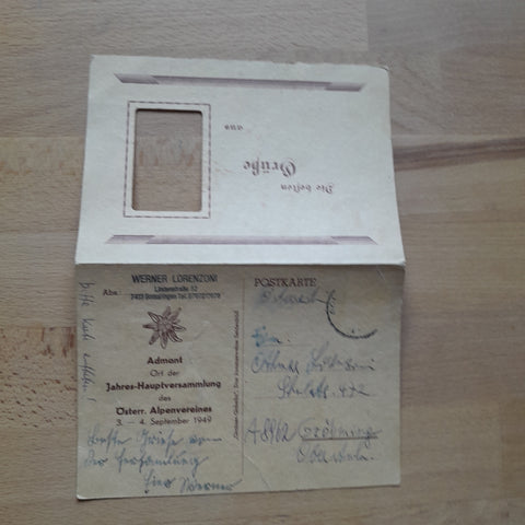 AK Die besten Grüße aus Admont. (Grainer-Gobelin, Das kunstgewebte Seidenbild) Gelaufen, aber Briefmarke wurde entfernt. Großformat. Zustand: stärker bestoßen.