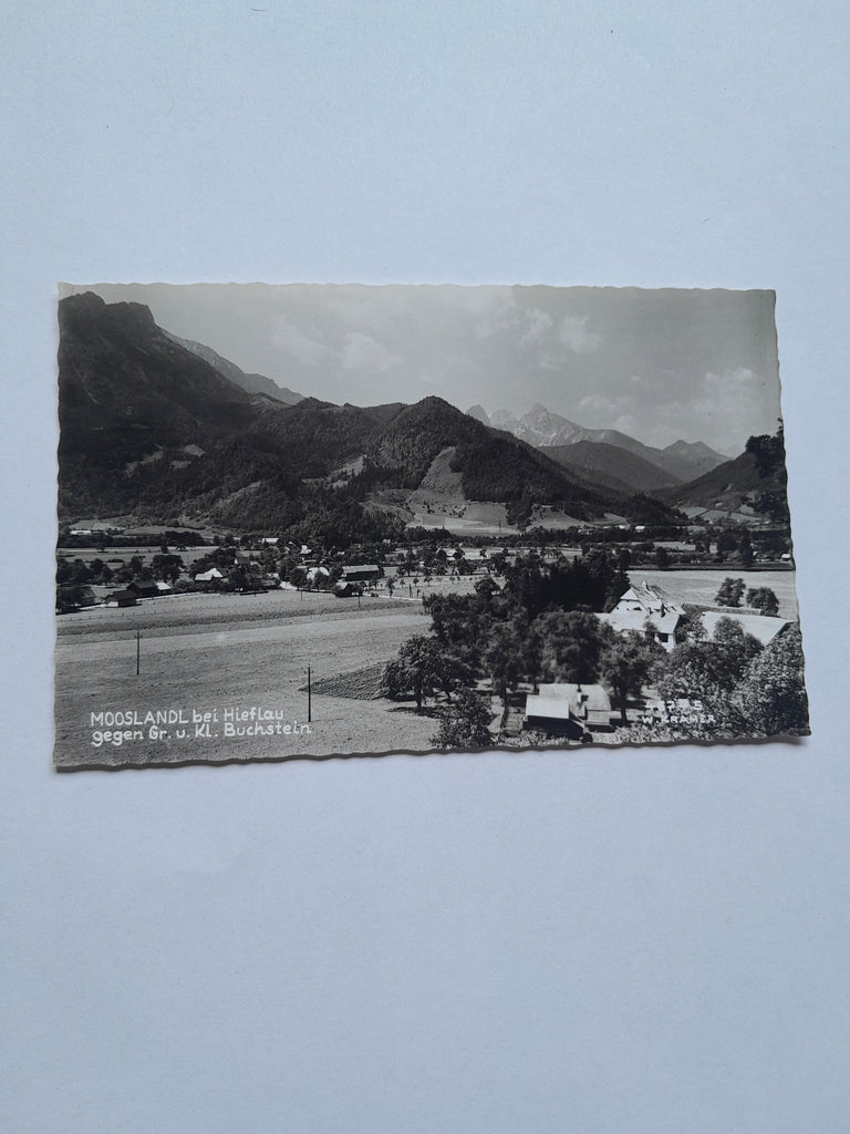 AK Mooslandl bei Hieflau gegen Gr. u. Kl. Buchstein. Gelaufen. Kleinformat. Verlag: Kramer. Zustand: gut.