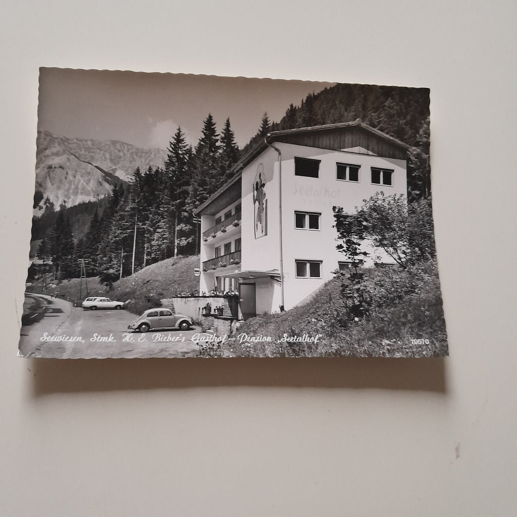 AK Seewiesen. H. E. Bieber's Gasthof Pension Seetalhof. (1968) Ungelaufen. Großformat. Verlag: Ledermann. Nummeriert: 79570. Zustand: gut.