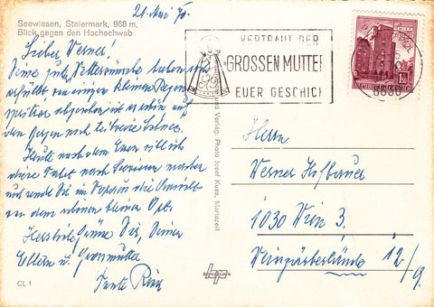 AK Seewiesen. Blick gegen den Hochschwab. Gelaufen. Großformat. Verlag: Kuss. Nummeriert: CL 1. Zustand: gut.