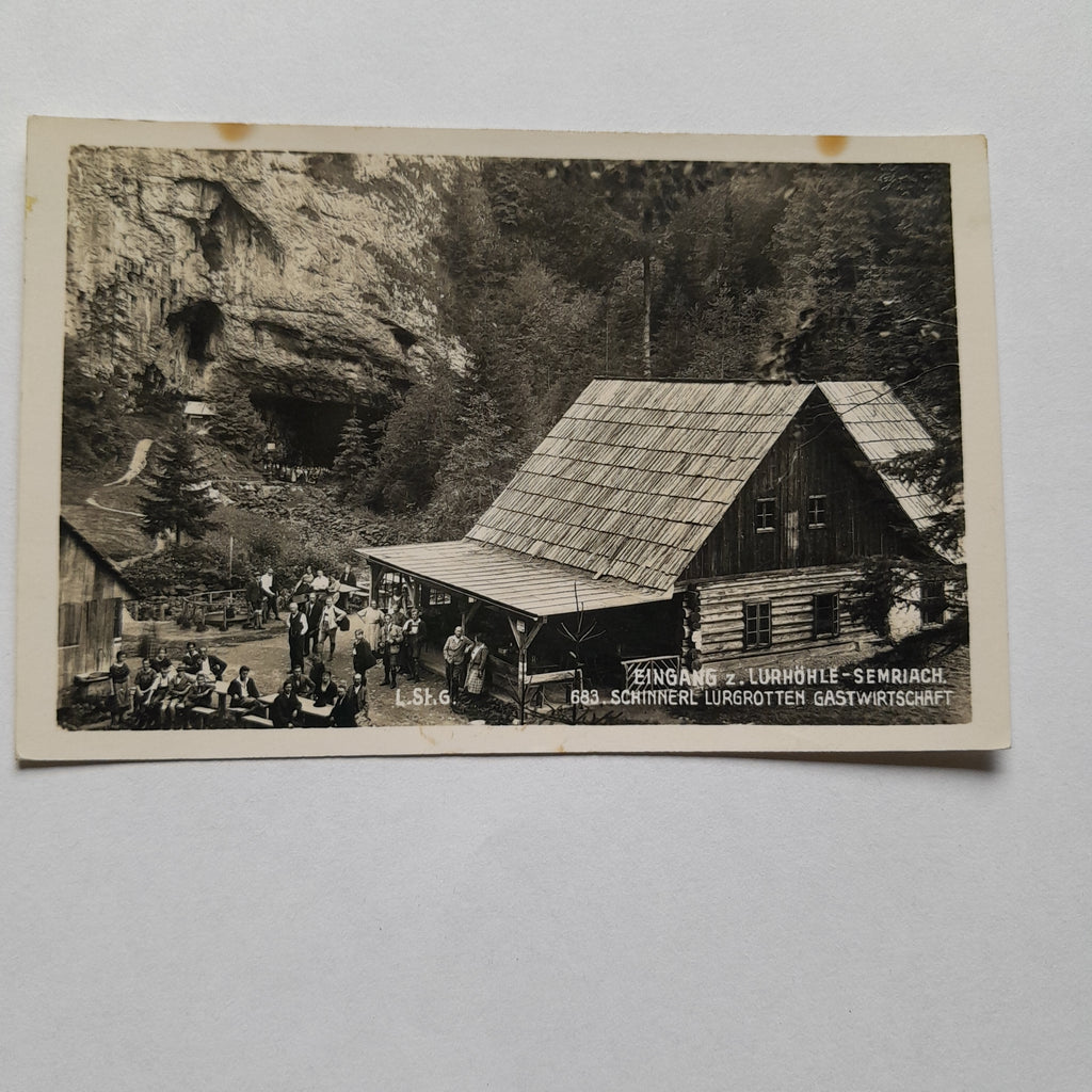 AK Eingang z. Lurhöhle Semriach. Schinnerl Lurgrotten Gastwirtschaft. (1929) Ungelaufen. Kleinformat. Verlag: Strohmeier. Nummeriert: 6. Zustand: gut.