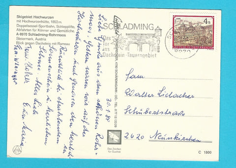 AK Skigebiet Hochwurzen mit Hochwurzenhütte. Gelaufen. Großformat. Verlag: Luftbild-Scheurecker. Nummeriert: C 1800. Zustand: gut.