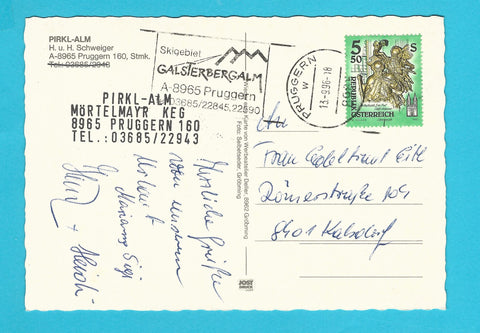 AK Skiparadies Galsterbergalm. Pruggern. Pirkl-Alm. H. u. H. Schweiger. Gelaufen. Großformat. Verlag: Deller Zustand: gut, rechtes unteres Eck angeknickt.