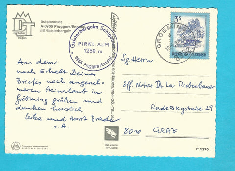 AK Skiparadies Galsterbergalm. Pruggern. Gelaufen. Großformat. Verlag: Scheurecker. Nummeriert: C 2270. Zustand: gut.