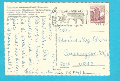 AK Skiparadies Planei Schladming. Gelaufen. Großformat. Verlag: Cosy. Nummeriert: W 9517. Zustand: gut.