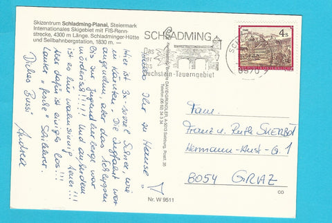 AK Skiparadies Schladming Planai. Gelaufen. Großformat. Verlag: Cosy. Nummeriert: W 9511. Zustand: gut.