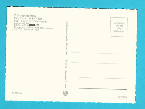 AK Spital am Semmering. Frühstückspension Gästehaus Winter. Lerchenwaldweg 3. Ungelaufen. Großformat. Verlag: Kellner. Nummeriert: 11233 FW. Zustand: gut.
