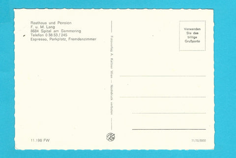 AK Spital am Semmering. Rasthaus und Pension F. u. M. Lang. Ungelaufen. Großformat. Verlag: Kellner. Nummeriert: 11198 FW. Zustand: stärker bestoßen.