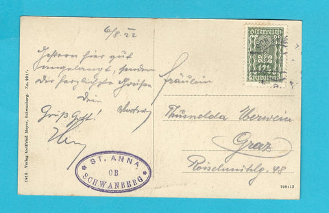 AK St. Anna ob Schwanberg. (1918) Gelaufen. Kleinformat. Verlag: Mayer. Nummeriert: 9217. Zustand: gut, leicht bestoßen.